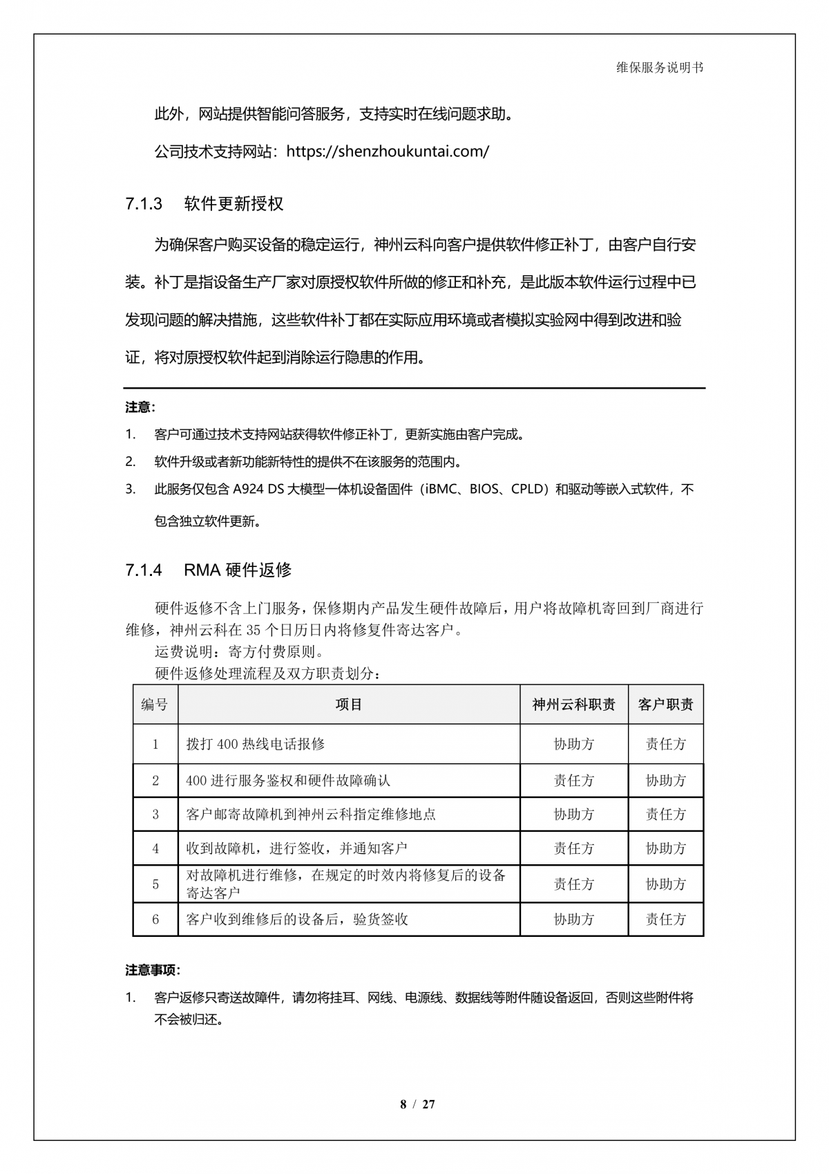 凯发K8A924 问学大模型一体机维保服务说明书_V1.0